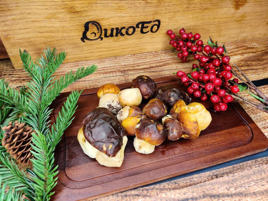 Уценка данной позиции связана с тем, что ножки и шляпки идут отдельно друг от друга. На вкус и пользу это не влияет совсем!!