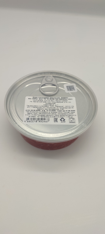 | Состав: | икра зернистая,соль, растительное масло, консервант Е200(сорбиная кислота) |