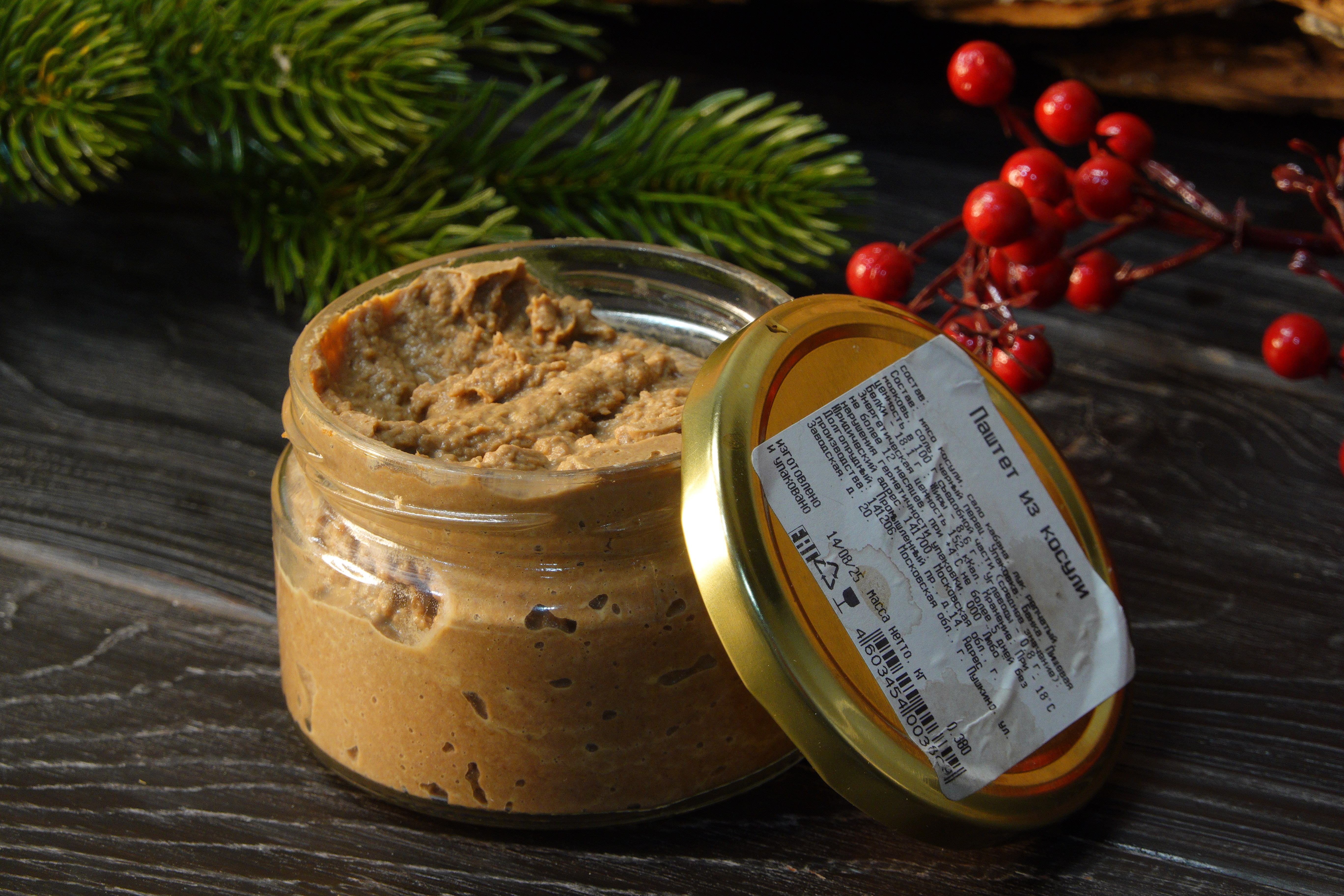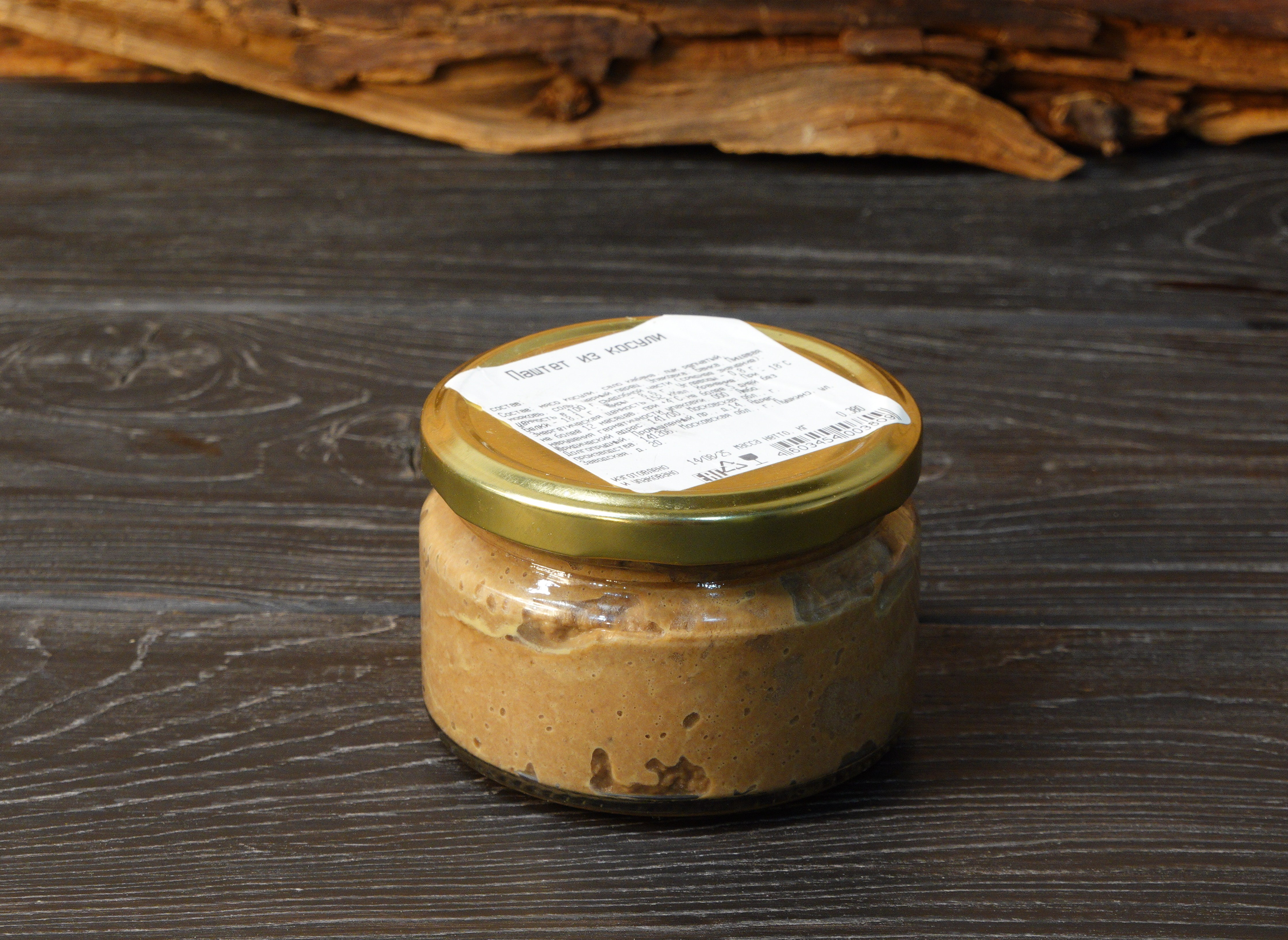 Паштет из косули состоит из мяса дичи, овощей и натуральных специй. Он полностью готов к употреблению, расфасован в стеклянную тару с откручивающейся крышкой. Продукт можно намазывать на хлеб или использовать для приготовления легких закусок. Подходит также для диетического питания.