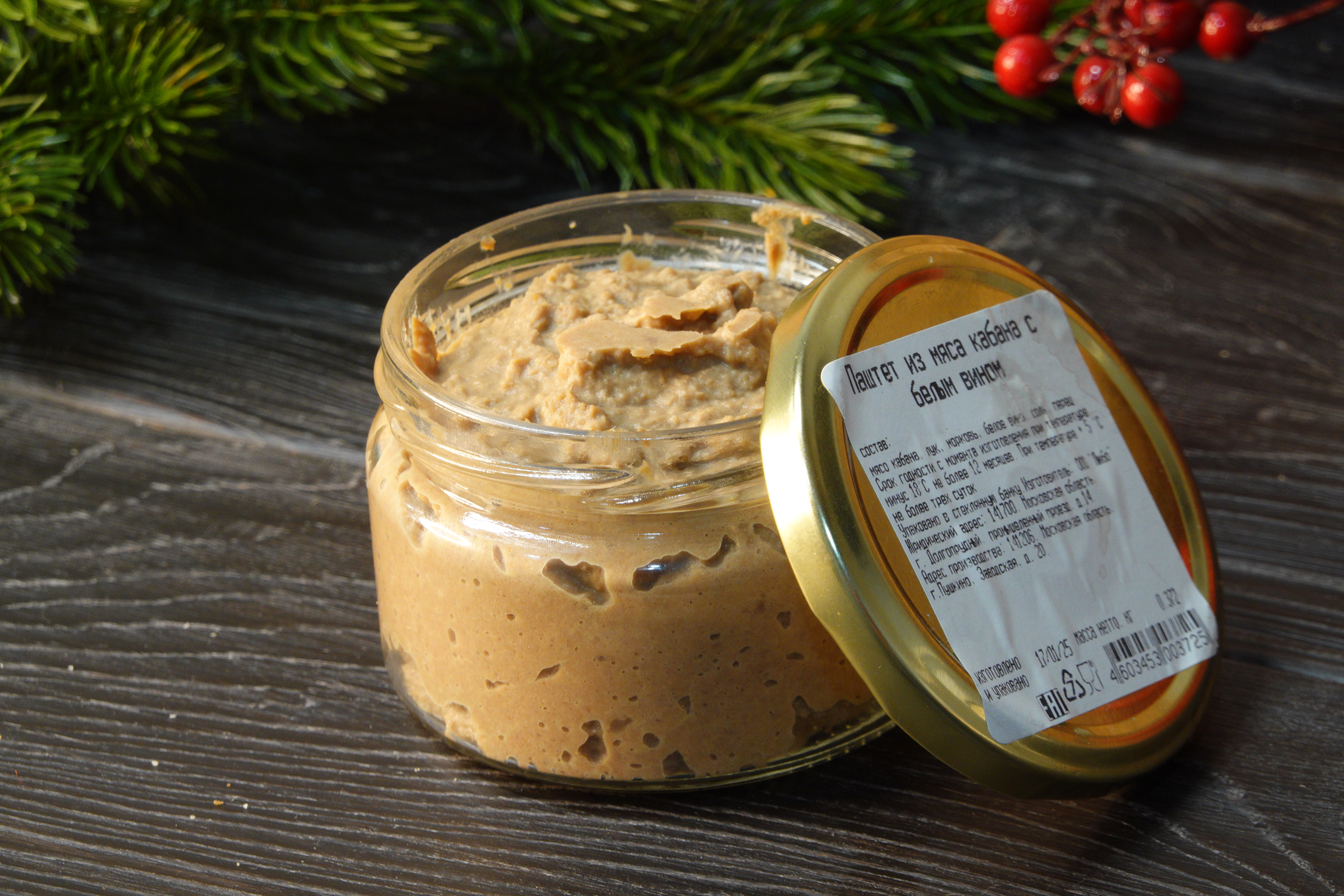 Паштет из мяса кабана с вином предназначен для приготовления вкусных бутербродов, начинок для сытных пирожков, блинчиков или рулетов. В состав продукта входит тушеное мясо, овощи, натуральные специи и немного сухого белого вина. Паштет полностью готов к употреблению, его можно давать детям и употреблять во время диет. Паштет из мяса кабана с вином – сытный продукт, богатый белками. Даже простые бутерброды получаются сытными и питательными. Смешав угощение с рисом, зеленью, вареными яйцами, овощами или грибами, можно получить отличную начинку для выпечки.