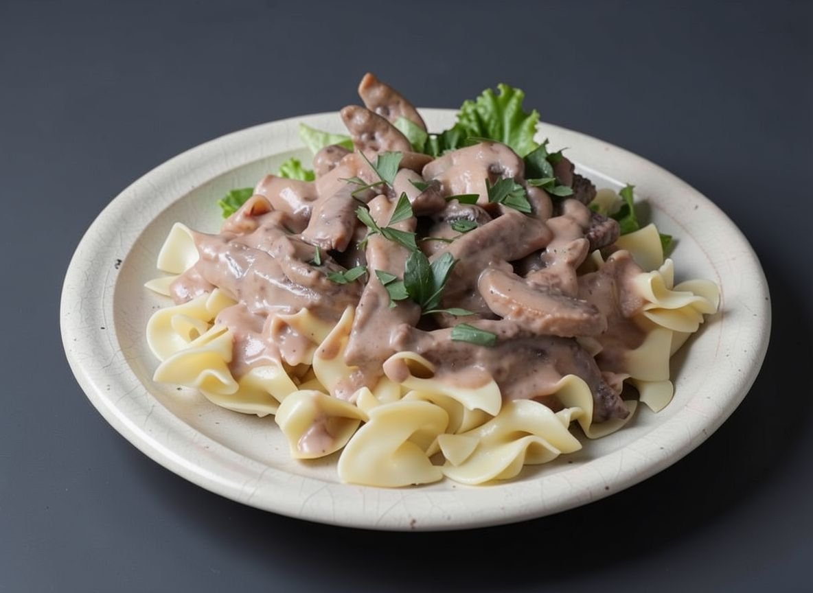 Бефстроганов - это классическое блюдо русской и мировой кухни, приготавливаемое из ломтиков мяса, обжаренных с луком, и подаваемое с соусом на основе сметаны или сливок. Это блюдо известно своим богатым вкусом и нежными текстурами.