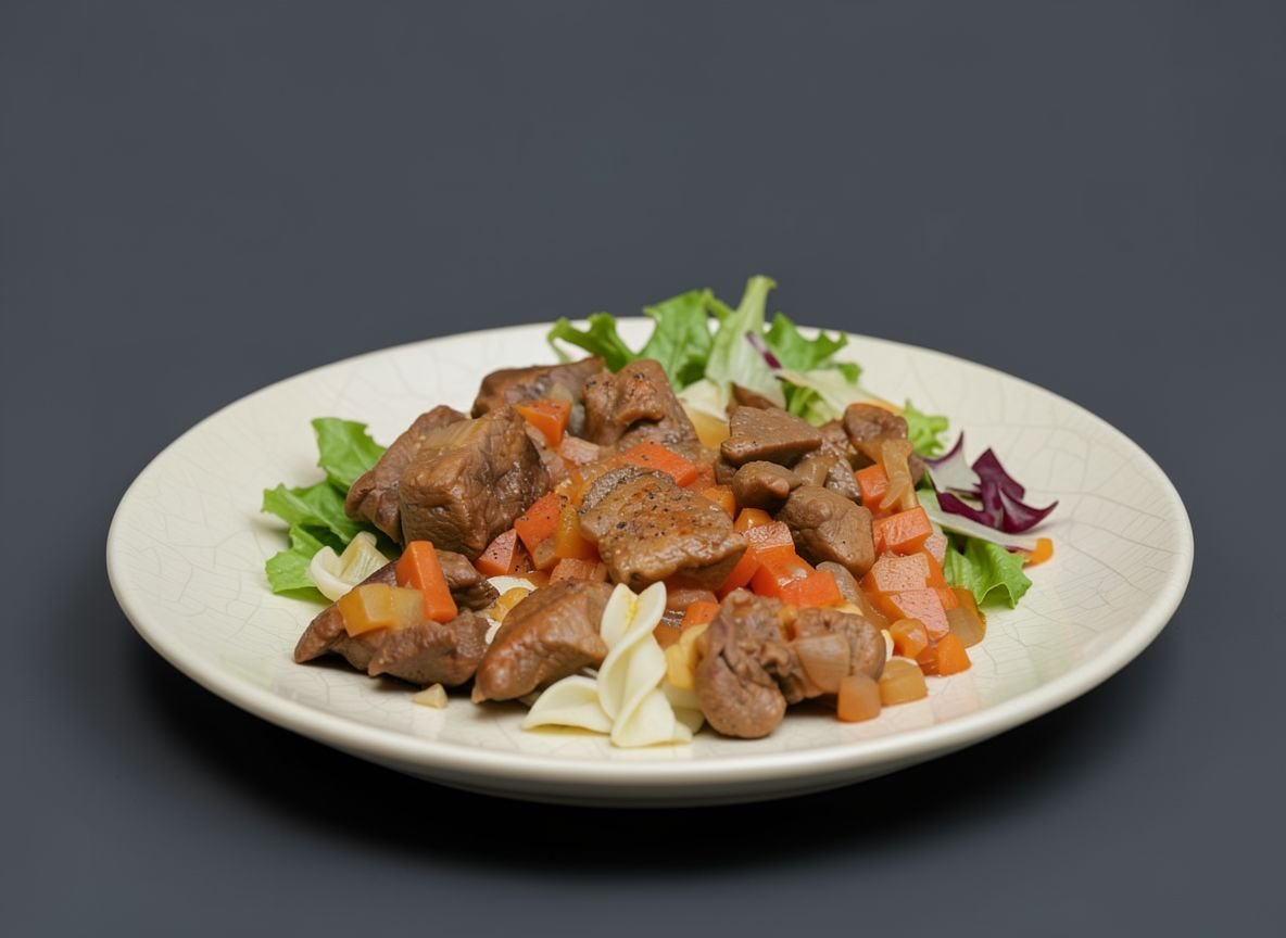На гарнир отлично подойдёт картофельное пюре или макароны. В глубокую сервировочную тарелку выложите гарнир, а сверху разместите гуляш, щедро сдобрив соусом. Посыпьте свежемолотым черным перцем и зеленью по вкусу и подавайте. Приятного аппетита!
