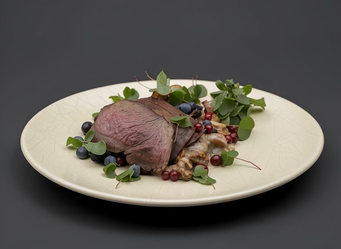 ПодробнееЛосятина немного напоминает классическую говядину, но только она гораздо полезнее и на порядок вкуснее. Из нее получаются превосходные супы, отличные шашлыки и масса других мясных блюд. Мясо лося считается экологически чистым, ведь животное что попало не ест, а выбирает только нравящуюся ему пищу. Включение лосятины в еженедельный рацион позволит насытить организм минералами и витаминами, нормализовать обменные процессы, стабилизировать уровень гемоглобина, а также улучшить работу костно-мышечной системы и даже увеличить умственные способности. Предлагаем не подвергать это довольно экзотическое мясо длительной термообработке, а приготовить его в стиле «татаки викингов» с сезонными сливами и пюре из пастернака с корнем сельдерея.