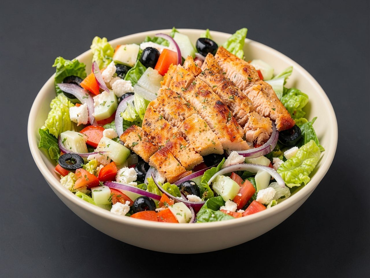 Греческий салат с тайменем