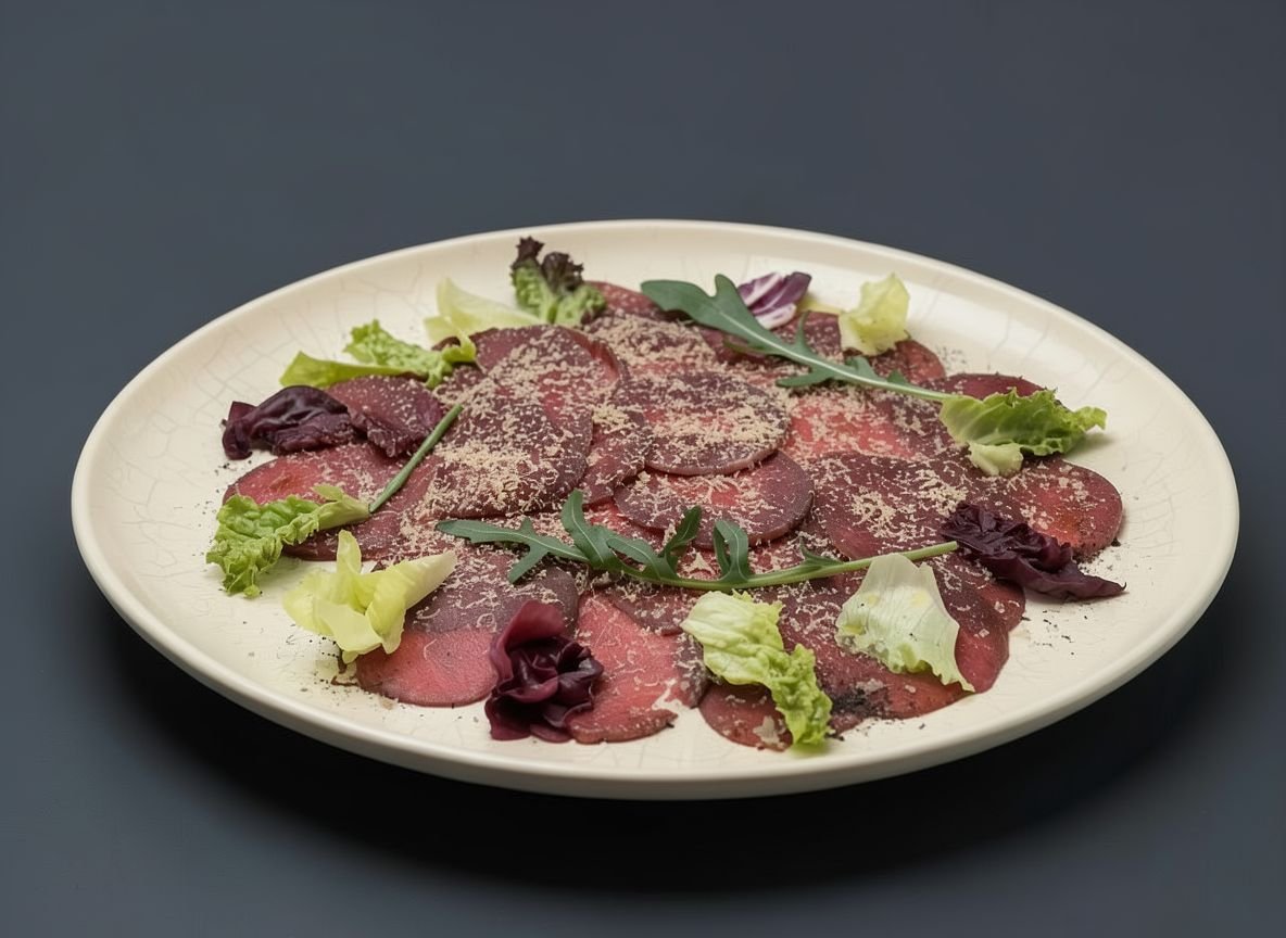 Карпаччо из косули с салатом из трав