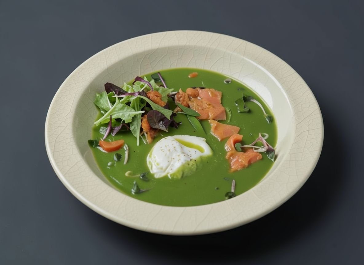Крем-суп из спаржи с копченой неркой