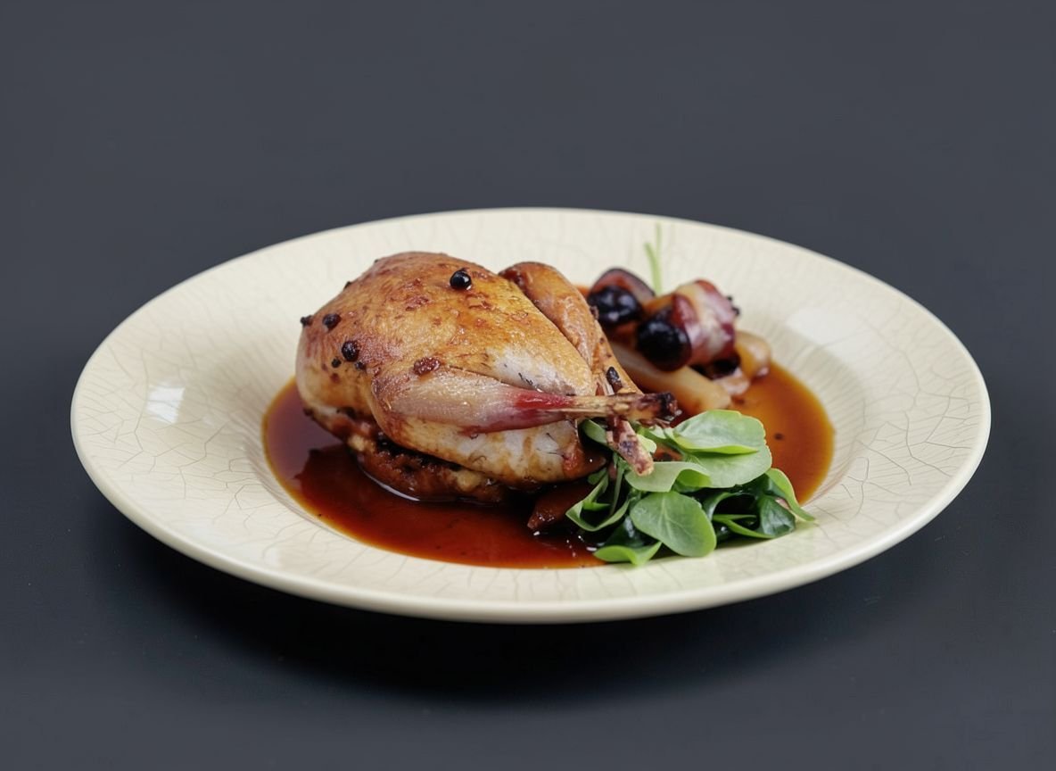 Этот блюдо — не только восхитительно на вкус, но и очень красиво выглядит на тарелках. А яркая капуста, поджаренные до корочки птички и рубиновый соус из клюквы издают аппетитные ароматы.