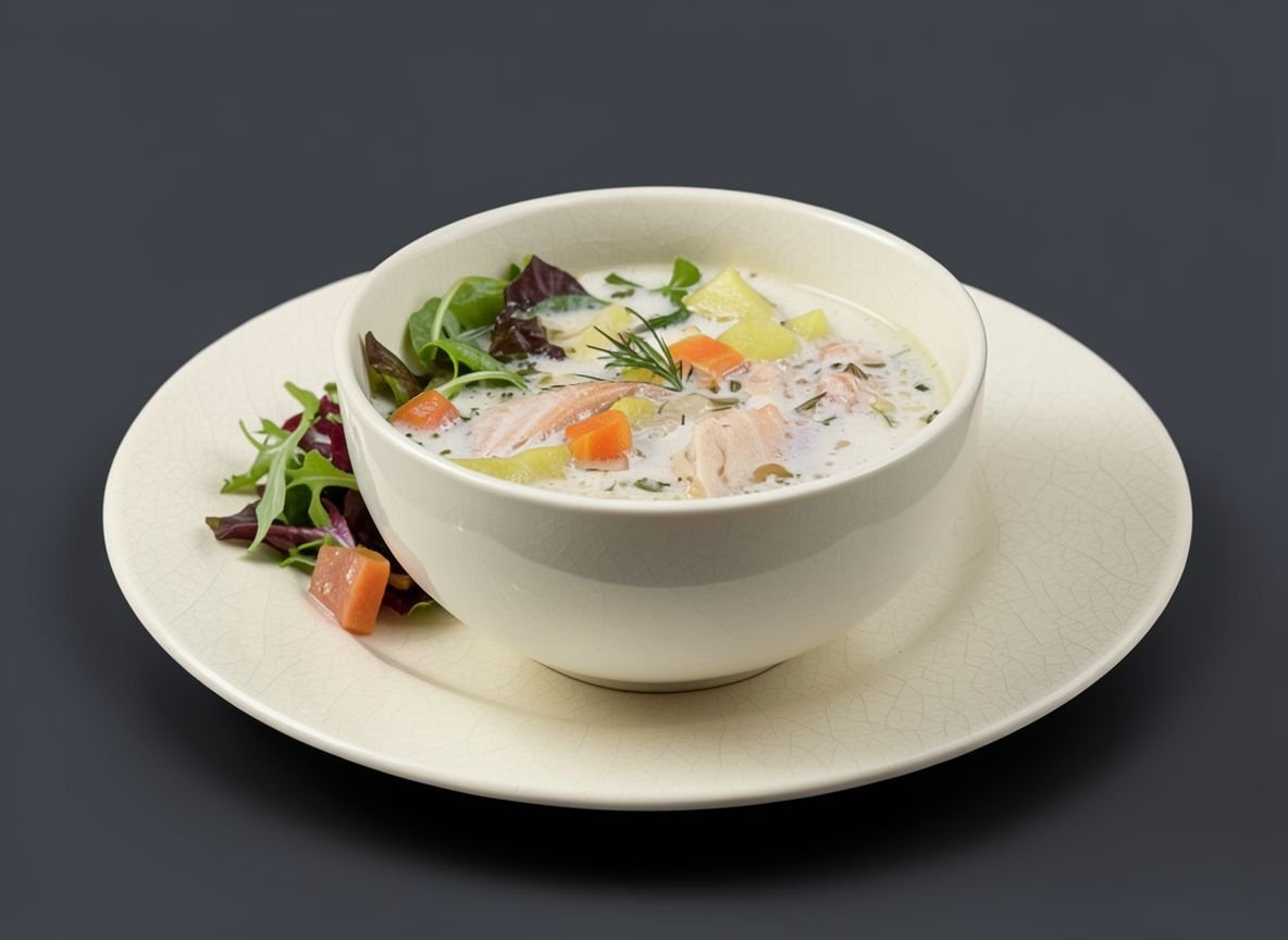 Подавать лохикейтто в глиняном горшочке, гренки с паприкой отдельно в пиале. По мнению финнов, суп становится гораздо вкуснее, когда настоится в течение суток.