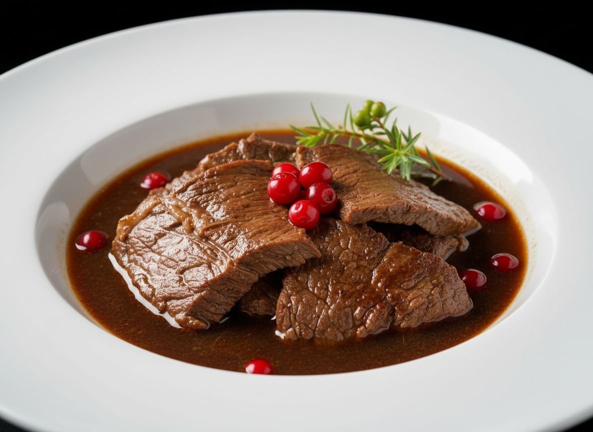 ПодробнееЛосятина отличается высокими вкусовыми качествами и небольшим содержанием жиров. Визуально она очень похожа на обычную говядину, так как почти точно такого же темно-красного цвета. Но вот по своему витаминно-минеральному составу и полезности для человеческого организма значительно ее превосходит. Рецептов приготовления мяса лося существует невероятное количество. Предлагаем приготовить лосятину в стиле «жаркое викингов», тушеную с сезонными сливами и поданную с пюре из пастернака с корнем сельдерея.