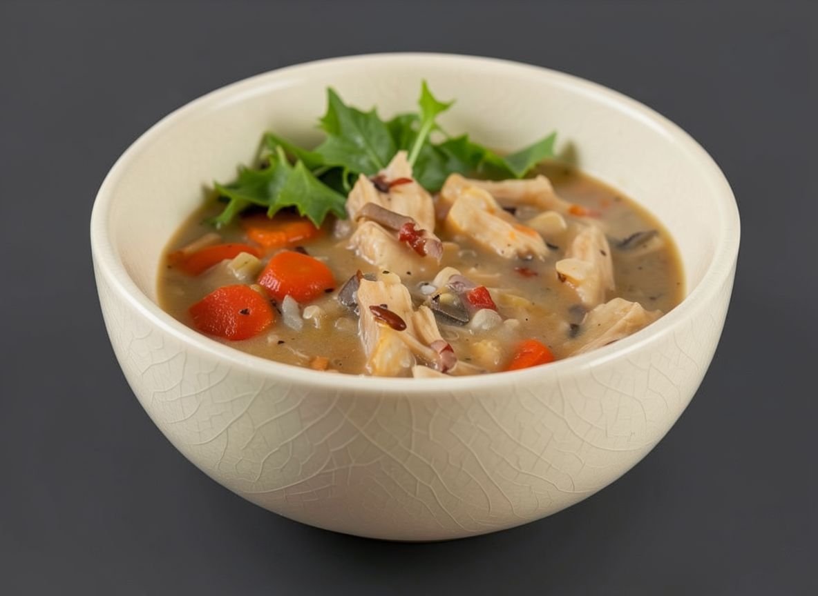 Разберите остывшую птицу, отделив мясо от костей. Поставьте на плиту большую кастрюлю с двумя литрами куриного бульона, добавьте косточки, доведите до кипения и варите на медленном огне 30 минут.
