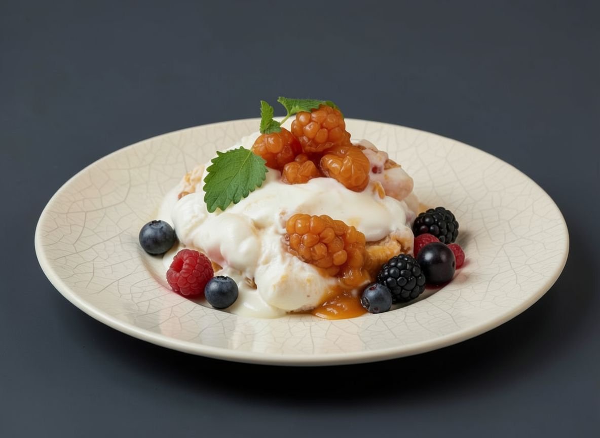 Мороженое можно украсить ягодами морошки. Приятного аппетита!