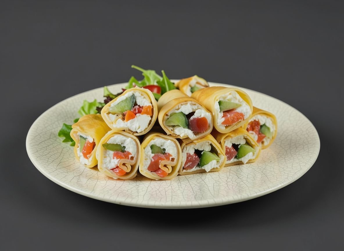 Подавайте фаршированные рыбкой блины как есть или нарежьте наискосок на 2-3 части. Приятного аппетита!