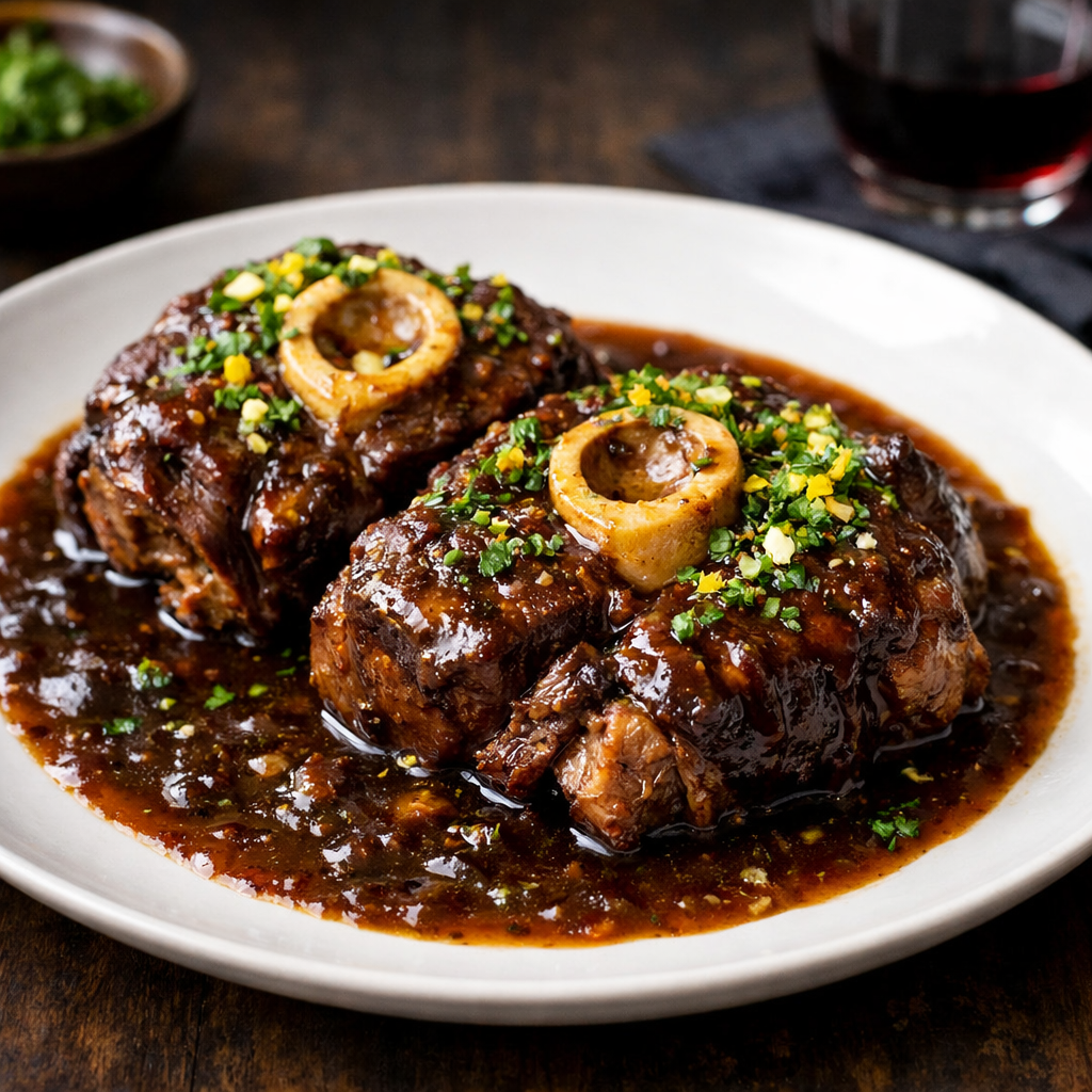 Оссобуко из дичи — хороший выбор для тех, кто любит классические томлёные блюда, но ищет более интересный вкус и характер. Оно подходит и для спокойного ужина, и для подачи «с настроением», когда важно произвести впечатление.