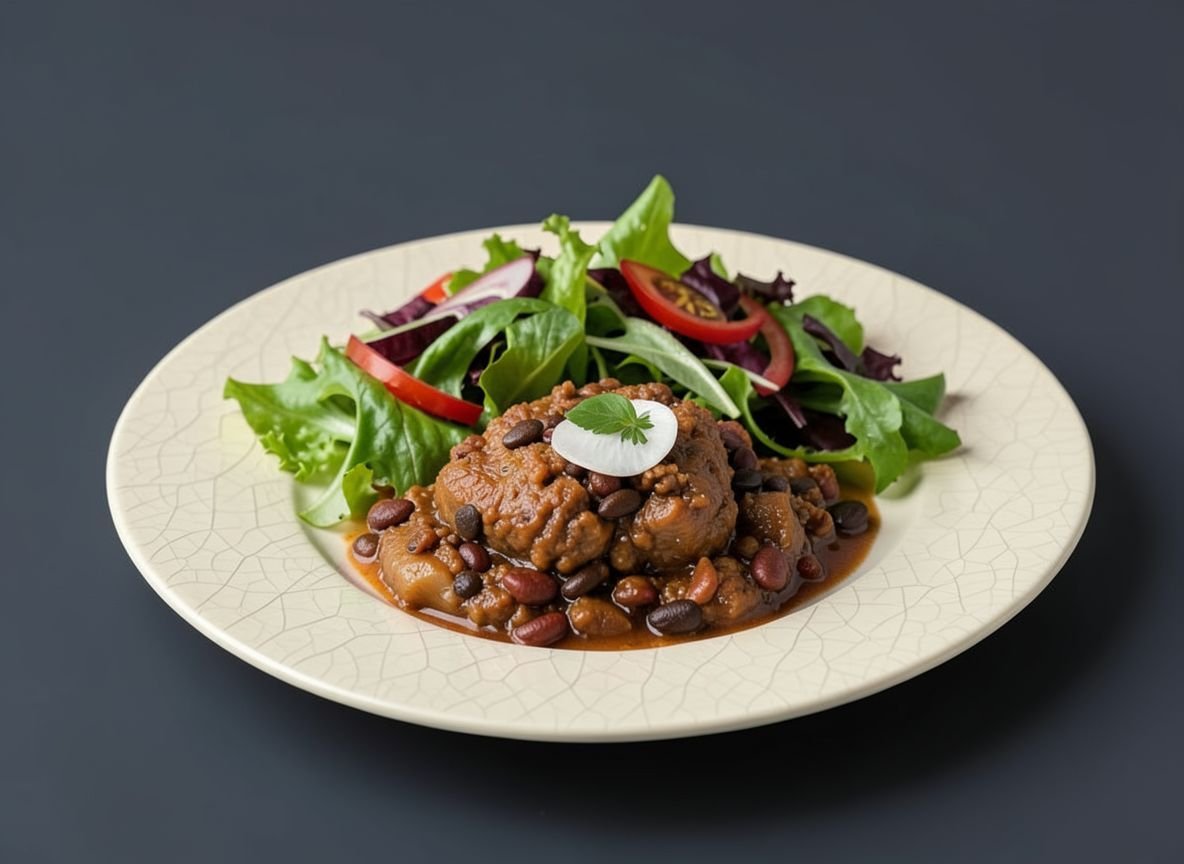 Верните к мясу заготовку из фарша, положите лук, всыпьте чили порошок, перемешайте, пусть всё прогревается около 3 минут. Затем влейте 0,5 литра пива и соевый соус, осторожно соскоблите поджарку с донышка жаровни, перемешайте, оставьте готовиться под крышкой на 20 минут при маленькой температуре. В конце добавьте красную и белую фасоль, если жидкости получилось мало, долейте ещё пива, закройте крышкой, дождитесь закипания и снимайте с огня. Перед подачей попробуйте, досолите по вкусу.