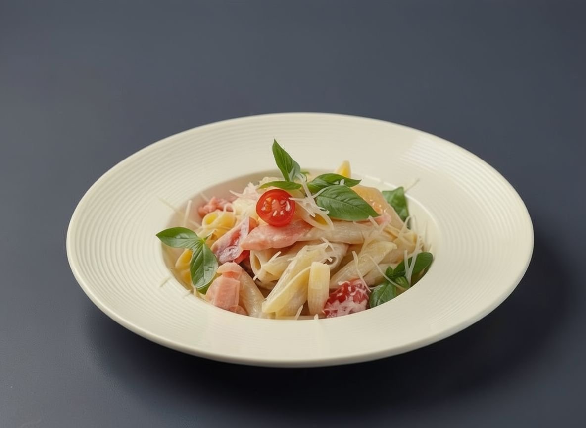 Паста с лососем (семгой), шпинатом и помидорами черри