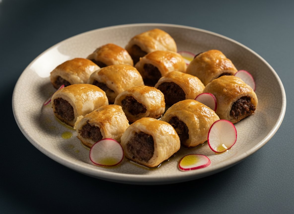 Рулетики из слоёного теста с олениной