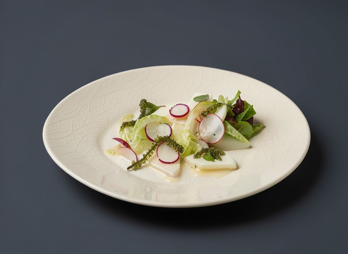 Все знают, что морские водоросли являются ценнейшим пищевым продуктом, содержащим огромное количество всяческих полезностей. Морской виноград или фукус пузырчатый, зеленая икра у нас пока редок, хотя во всем мире, особенно в Корее и Японии, популярен чрезвычайно. Он имеет совершенно неповторимую текстуру, ведь небольшие «виноградинки» очень характерно лопаются во рту, чем сильно напоминают рыбью икру. На вкус эта водоросль похожа на морскую воду — слегка солоноватая и чуть сладковатая. В морском винограде много железа (почти суточная норма), йода, меди, цинка, калия, хлора, кальция, натрия и пр., есть витамины (А, С, К, группа В). Фукус пузырчатый при регулярном потреблении в пищу оказывает общеукрепляющее воздействие на организм, нормализует кровяное давление, стимулирует работу щитовидной железы, оказывает антибиотическое воздействие, облегчает симптоматику ревматологических заболеваний и др. Настоятельно рекомендуем включить его в свой рацион и приготовить из морского винограда необычный изысканный салат с редисом и дыней.