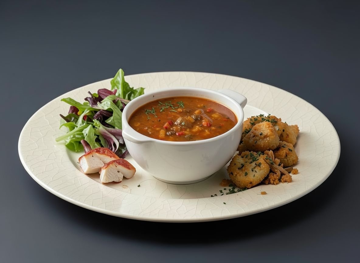 Традиционно солянку подают горячей, украшая зеленью и сметаной. Это насыщенное и ароматное блюдо, которое пользуется популярностью в русской кухне и является особым угощением для любителей дичи.