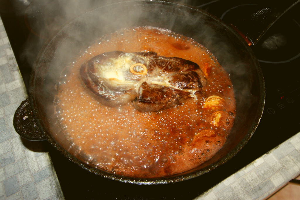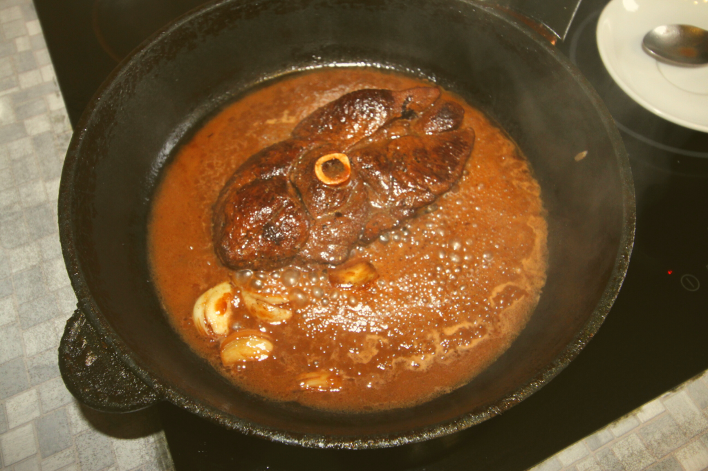 Стейк из окорока оленя в красном вине