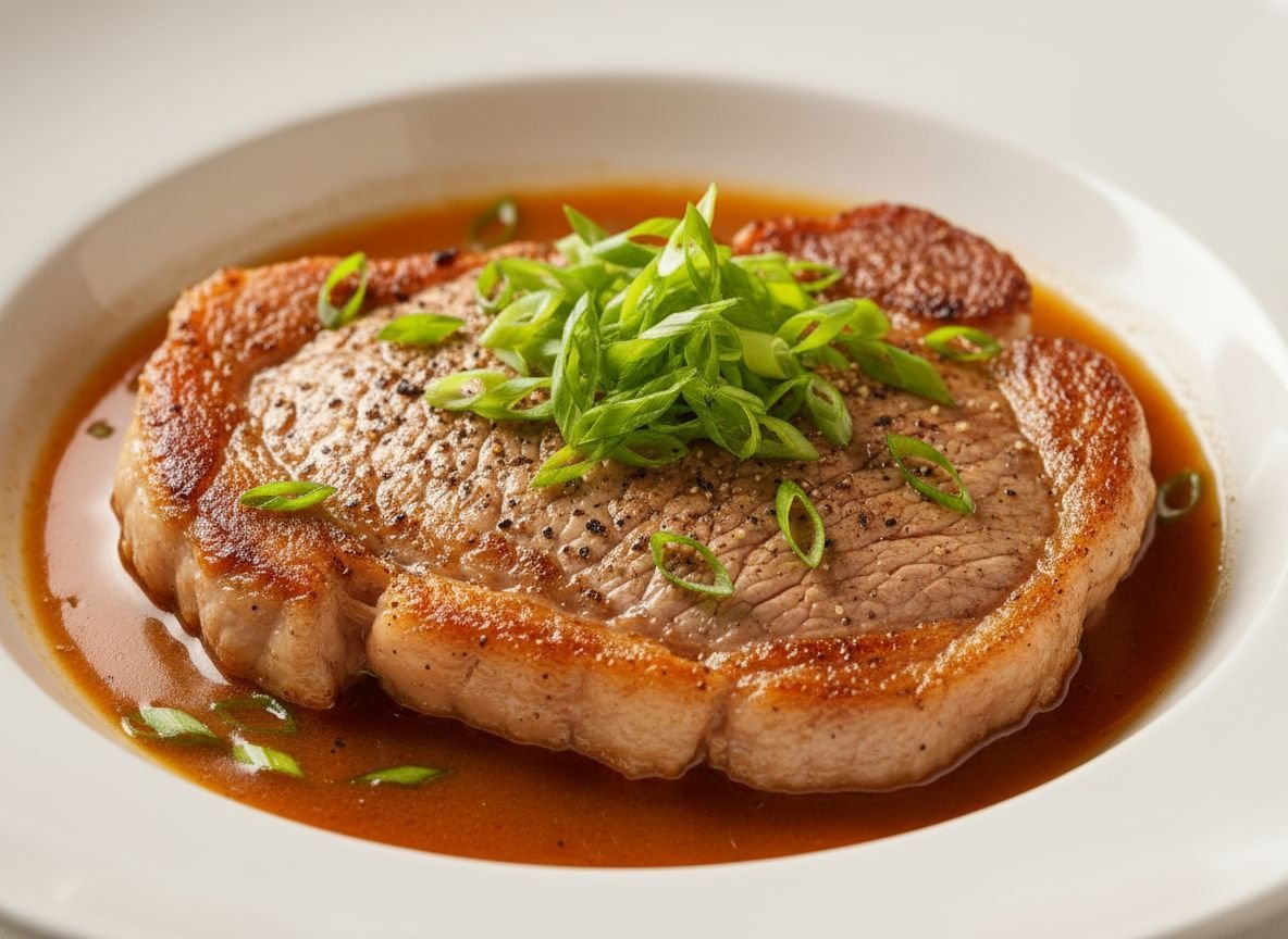 Стейк из оленины с зелёным луком