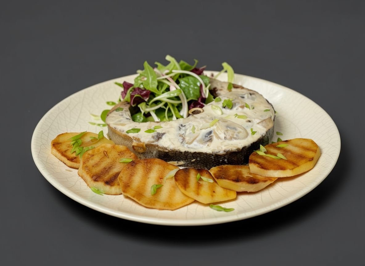 Таймень в соусе из сливок и грибов