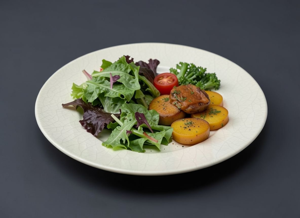 Скат — рыба с плотной, волокнистой текстурой и мягким, деликатным вкусом. Он хорошо держит форму при запекании и при этом остаётся сочным. В этом блюде филе покрывается перечным соусом и быстро запекается при высокой температуре, образуя лёгкую глянцевую глазурь. Контраст создаёт гарнир: свежий шпинат, слегка обжаренный на сливочном масле, упругие маринованные грибы муэр и ореховая нота арахиса. Азиатский соус добавляет кисло-сладкий баланс и глубину, а кунжут завершает вкус лёгким жареным ароматом. В итоге получается выразительное, современное блюдо с понятной структурой и яркой подачей.