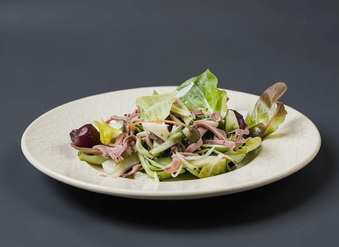 Тёплый салат с языком косули