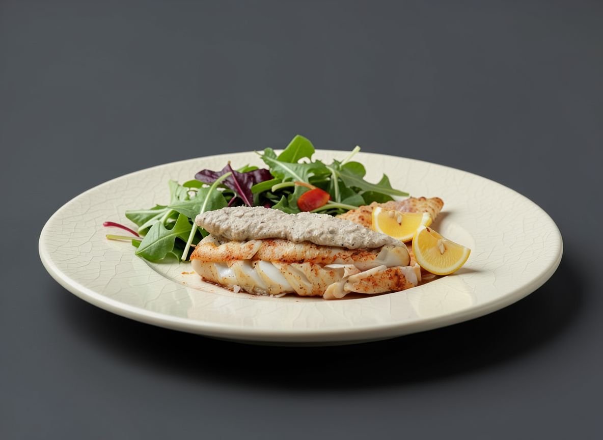 Приготовьте на решётке треску в течение 15 минут. Аккуратно снимите, чтобы филе не сломалось, выложите на блюдо, полейте соусом, подавайте с лимоном и салатом из свежих овощей и зелени. Наслаждайтесь!
