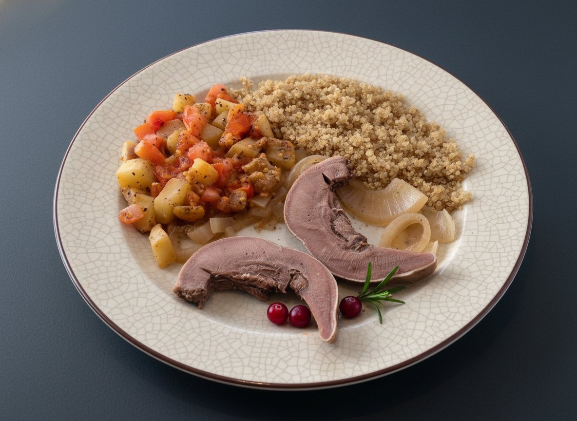 Подавайте со сложным гарниром — из 2-3 составляющих. Это могут быть тушеные овощи, капуста, отварная крупа, картофель.