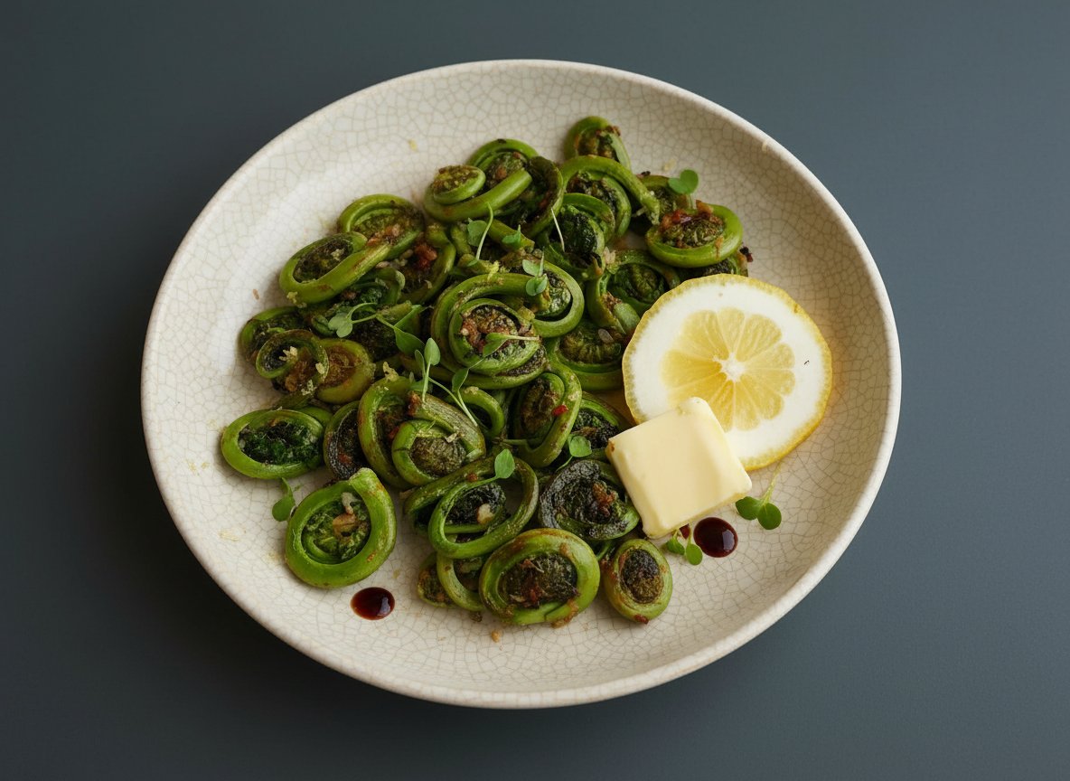 Жареный папоротник с чесноком и лимонным маслом